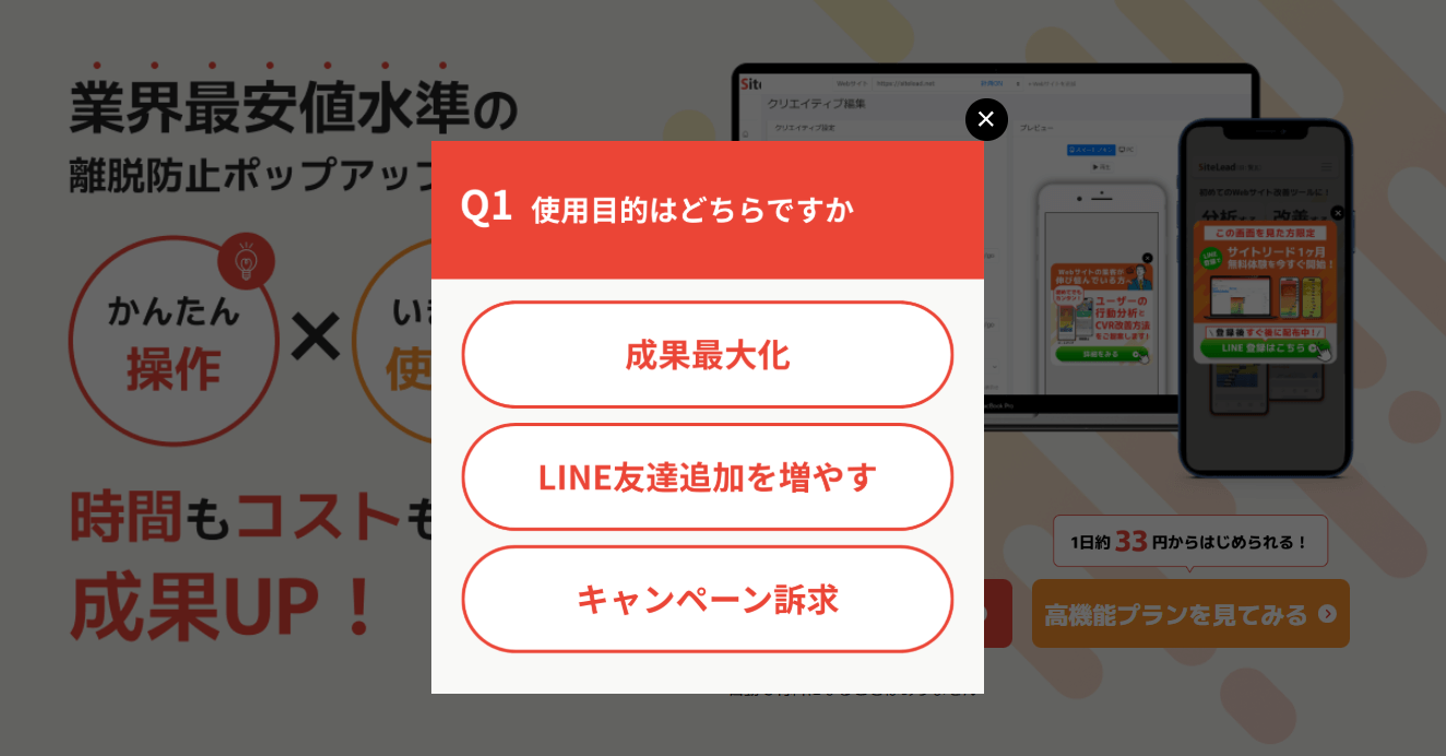 誰でも簡単に使える離脱防止ポップアップ「サイトリード」