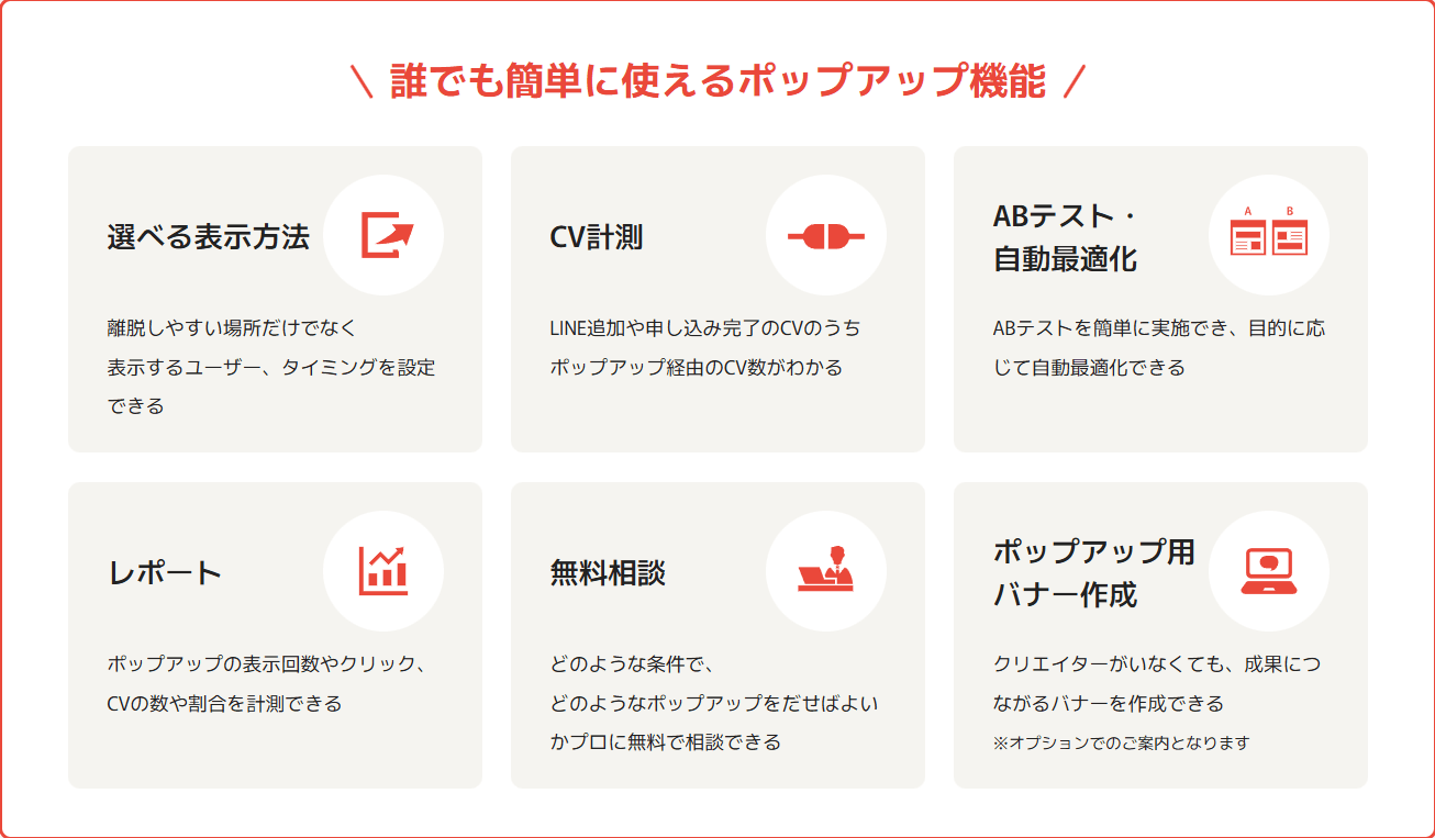 「ポップアップを作成して終わり」ではなく、貴社の課題を解決するためのサポート体制も整えています。